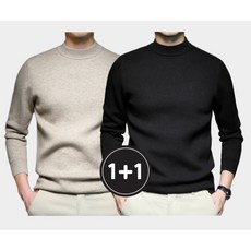 위드올 남자 겨울 긴팔 티셔츠 베이직 라운드 울 니트 2종 세트