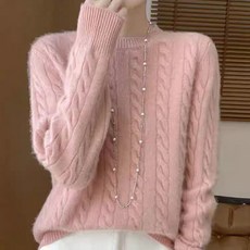 라파클럽 여성 라운드 케이블 꽈배기 면 100% 니트 스웨터