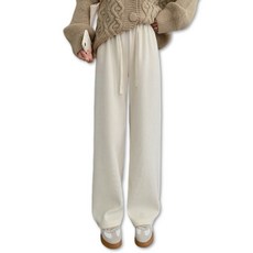 피어니스트 여성용 골지 니트 와이드 기모 팬츠