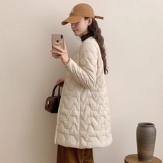 ANYOU 겨울 여성경량패딩 중년여성 라운드넥 롱패딩 코트