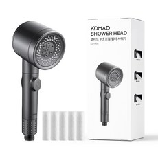 코마드 3단 수압조절 고압 샤워기 헤드 필터세트, 다크그레이, 1개