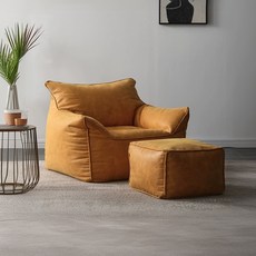 빈티지 빈백 소파 1인용 좌식 쇼파 거실 풋스툴 편한 원룸 가죽 의자, [1인용 소파], 캣스크래치 가죽 레트로 브라운