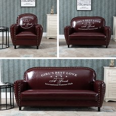 빈티지 소파 가죽 미국 복고풍 카페 휴게실 미용실 대기용 1인용 2인용 3인용, 와인