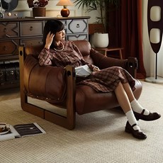 빈티지 소파 인플루언서 쇼파 순원목 1인용쇼파 모던 심플 소파베드 북유럽 스타일 리클라이너쇼파 아메리칸 빈티지 1인쇼파, 빈티지 브라운