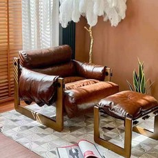 편안함과 스타일을 동시에 1인 안락의자 암체어 리클라이너 소파 천연가죽 라운지체어, 갈색