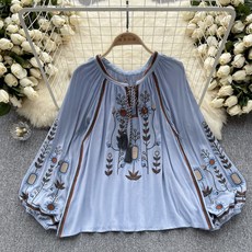 에스닉 아일렛블라우스 빅사이즈 프릴 시원한 블라우스
