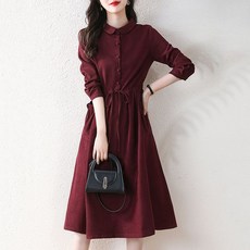 POMTOR 빈티지 기질 셔츠 원피스 날씬해 보이는 여성스러운 미디엄 추석 원피스