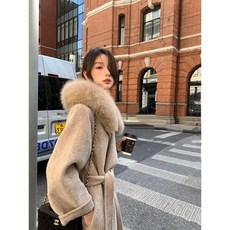 울 100 산드로 핸드메이드 랩 코트 후드 퍼