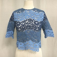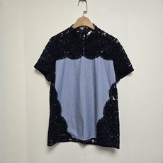 (빈티지) 산드로 코튼 레이스 반팔 블라우스 블루(M)