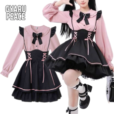 일본 서브컬쳐 양산형 지뢰계 옷 원피스 + 셔츠 투피스 세트 멘헤라 패션 졸업사진 컨셉