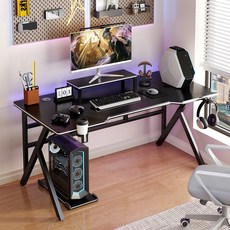 카본 패턴 1인용 게이밍 컴퓨터 철제책상 사무용책상 헤드셋거치대 포함, 블랙