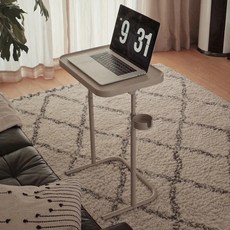 높이 각도조절 사이드 보조테이블 거실 쇼파 침대 커피 탁자 티테이블 1인용 노트북책상, 아이보리