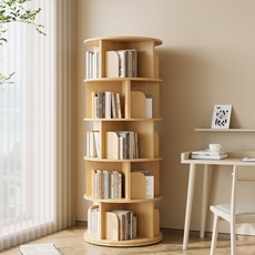 KURUA 학생 대용량 원형 책장 거실 서재 회전형 책꽂이, 5, 오크, 1단