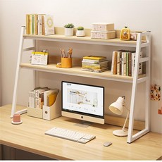 문리버 2단 책꽂이 철제 원목 간이 책상 선반, 화이트