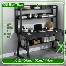 린텔라 학생 책상 세트 조립식 공부 데스크 중학생 책장 수납 심플 고등 철제 일자책상, 120cm, 블랙 블랙