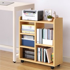 뷔이위이 책장 거실 이동식 인테리어 책꽂이 서랍장, 4단, 우드