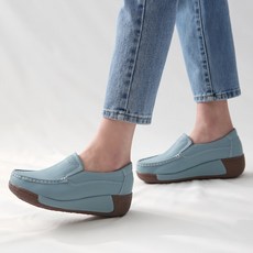 단골언니 여성용 가죽 키높이 통굽 스머프 슬립온
