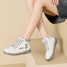 여성 잉글리시 워커 부츠 통굽 스니커즈 하이탑 캐주얼 화이트 슈즈 빵 패션 여성화