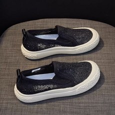여성 여름 플랫 스니커즈 레이스 여성화 캐주얼 메쉬 통굽 슬립온 운동화 패션 통기성 슈즈 LJX