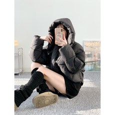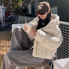 POMTOR 여성 루즈핏 슬림 후드 패딩 캐주얼 오버사이즈 재킷 숏패딩