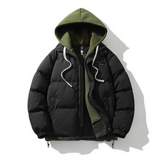 NEW 남자 후드 경량 숏패딩 점퍼 가짜 투피스 디자인 역시즌패딩 자켓 바람막이보온과 패딩 코트 빅사이즈남자패딩4XL