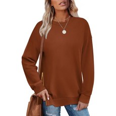 위홀 여성용 오버사이즈 스웨트 셔츠 크루넥 튜닉 탑사이드 지퍼 경량 폴로버 스웨터 2024 패션