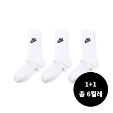 1+1 나이키 에센셜 크루삭스 장목 스포츠 양말 2팩6켤레, 6개