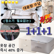 1+1+1 특가! 3단 접이식 수납 압축파우치[3배 용량] 겨울옷보관 의류 압축팩 캐리어 정리백 (청소기 필요없는), [1+1+1]아이보리