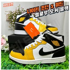 [국내매장판] 나이키 에어 조던 1 미드 농구화 남성 여성 로우 하이 발편한 쿠션좋은 키높이 데일리 조깅화 워킹화 런닝화 코트화 배드민턴화 스니커즈 신발 운동화 옐로우 노란 부츠