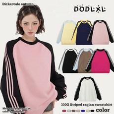 DODLXL 남녀공용 라운드 소매셋줄 봄가을 패션 배색 긴팔 맨투맨 티셔츠 상의