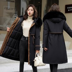 ANYOU 패딩 경량패딩 겨울 패딩 여성 미디움 무릎 롱 빅 울 도톰 롱패딩 후드 코트 롱패딩