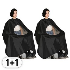 1+1 방수 커트보 염색보 이발 가운 헤어 미용 업소용 파마 염색 커트 미용실 시술 도구 미용실 이발용 앞치마, R79013E(핸즈프리커트보 블랙 1+1, 1세트