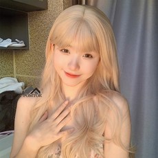 POMOR 여성 밀크티골드 웨이브 통가발 롱 펌 헤어 가발, 1개, 밀크티 금색