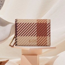 [정품] 닥스 카드지갑 DCWA2E508W2 [GREAT HOUSE CHECK PVC] 브라운 로고장식 가죽 반지갑 슬림 얇은