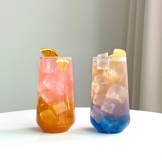 1+1 셀레나다이아라인 내열유리컵 홈카페 투명 플리츠 하이볼 470ml, 2개