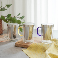 내열유리 스텐뚜껑 티망 머그잔, 블루핸들x450ml, 1개
