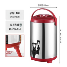 업소용 차통 밀크티 버블티 티컨테이너 보냉 보온 스테인리스 캠핑 대용량 물통, 10L 핫 레드, 1개