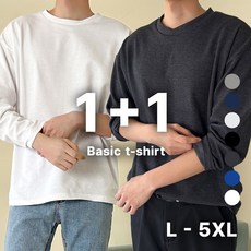 2장묶음(1+1) 홈인박스 남자 무지 티셔츠 긴팔티 오버핏 빅사이즈 검정
