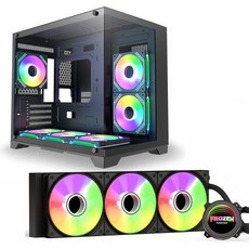 6개의 ARGB 팬이 있는 MATX PC 케이스 + 360mm AIO CPU 액체 냉각기 검은색, 6개의 ARGB 팬이 있는 MATX PC 케이스 + 3