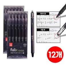 다마켓 지워지는 볼펜 0.5mm 다이어리 문제풀이 노트필기 메모, 12개, 지워지는 볼펜 블랙