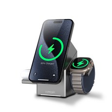 아이팝 큐브 3in1 맥세이프 충전 거치대 아이폰 스마트폰 애플워치 버즈 아이팟 무선 충전, 그레이