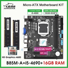 B85 마더보드 세트 코어 i5 4690 프로세서 및 DDR3 메모리 데스크탑 키트 USB SATA 3.0 NVME NGFF WIFI M.2 2x8GB 16GB LGA1150, [01] 마더 보드 + CPU + RAM, 1개