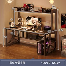 1인용 카본 텍스쳐 강철 컴퓨터 게이밍 책상 서재 공부 사무용, 블랙