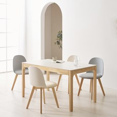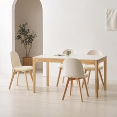 보니애가구 로렌 원목 포세린 세라믹 테이블 1400 + 의자 4p 세트 방문설치, 식탁(크림화이트+내추럴), 의자(아이보리)