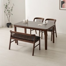 라로퍼니처 허그 1400 포세린 통 세라믹 4인 고무나무 원목 식탁 세트, 식탁+의자2+벤치1(그레이상판)