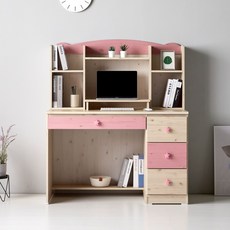 책꽂이 책장 일체형 책상 222 공부 책상, 핑크색