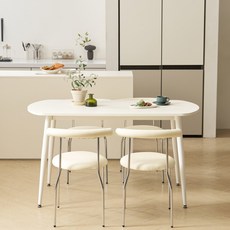 참갤러리 반타원 세라믹 식탁 테이블 방문설치, 화이트, 4인용