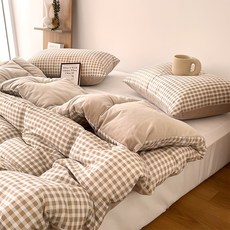 쁘리엘르 데일리 체크 항균 워싱 차렵침구 세트