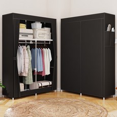 Alemon 조립식 옷장 간이 합금 옷장 프리미엄 비키니 옷장, 01블랙