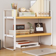 문리버 2단 책꽂이 철제 원목 간이 책상 선반, 화이트